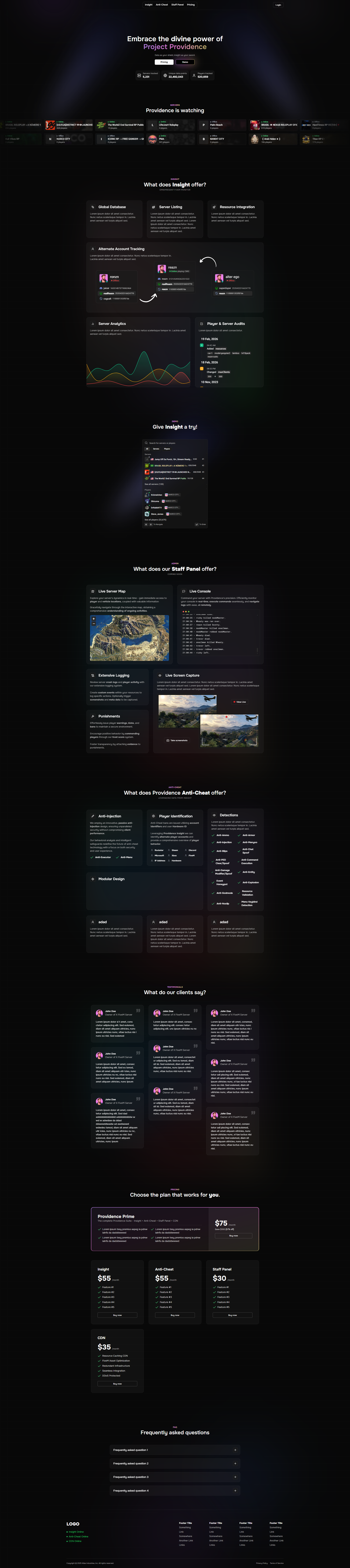 Project Providence: The complete FiveM operations suite. Secure your server with active anti-cheat and lead with data-driven insights through our integrated staff panel and analytics platform.