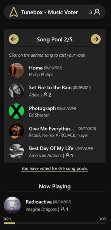 Empower attendees to curate their own music experience by casting votes for songs from your playlist. Create a vibrant and unforgettable atmosphere that caters to diverse music tastes - everyone is different - let the crowd decide!